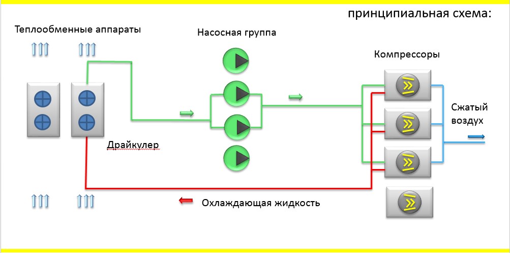 Преимущественно драйкулеры используются в системах жидкостного охлаждения компрессорного оборудования,